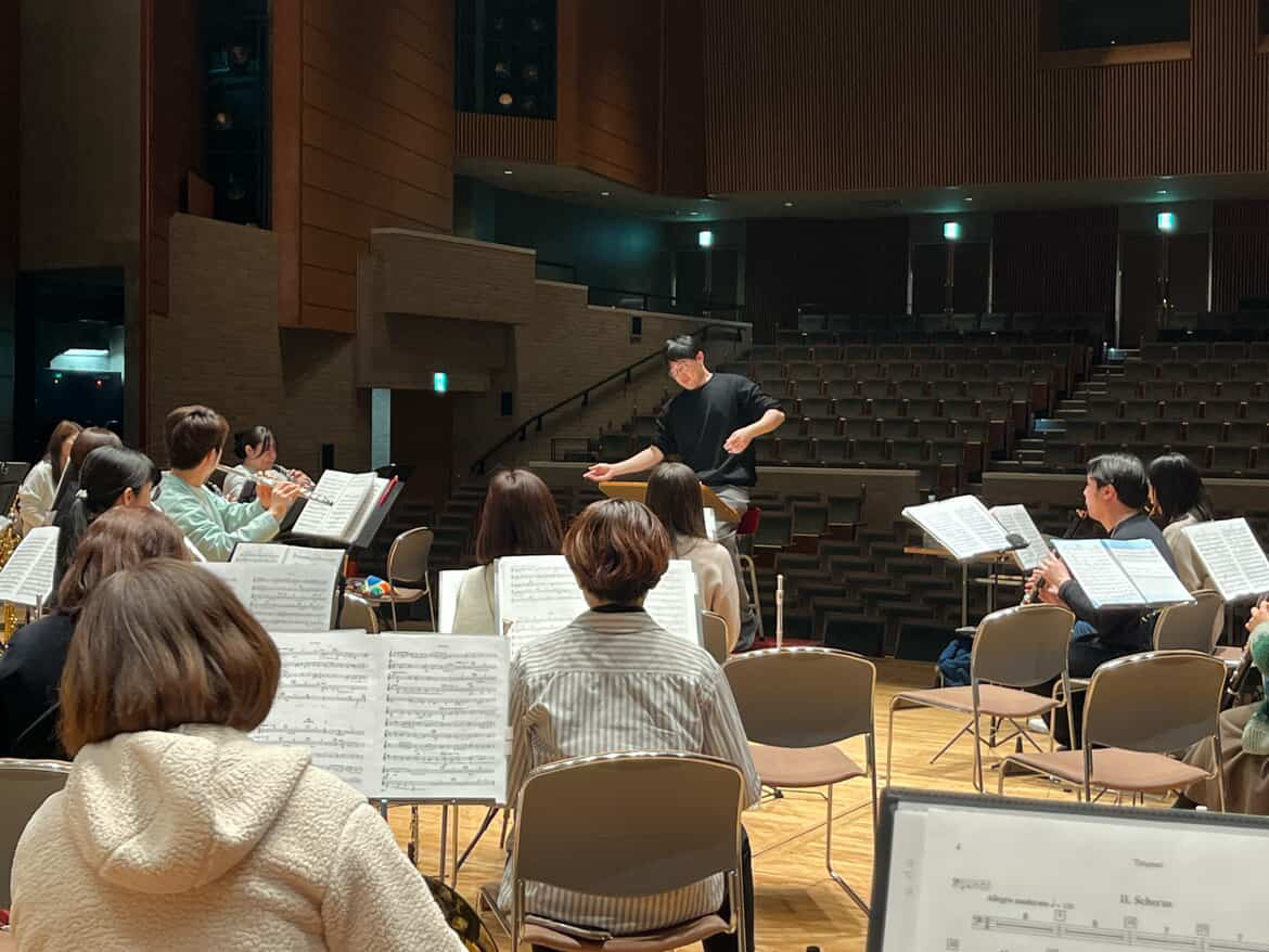 練馬文化センター小ホールにて『SAKURA BLAS ORCHESTER』、本番前最後の合奏練習です🌸賛助出演いただく皆さまとリハーサルを進めていきます。