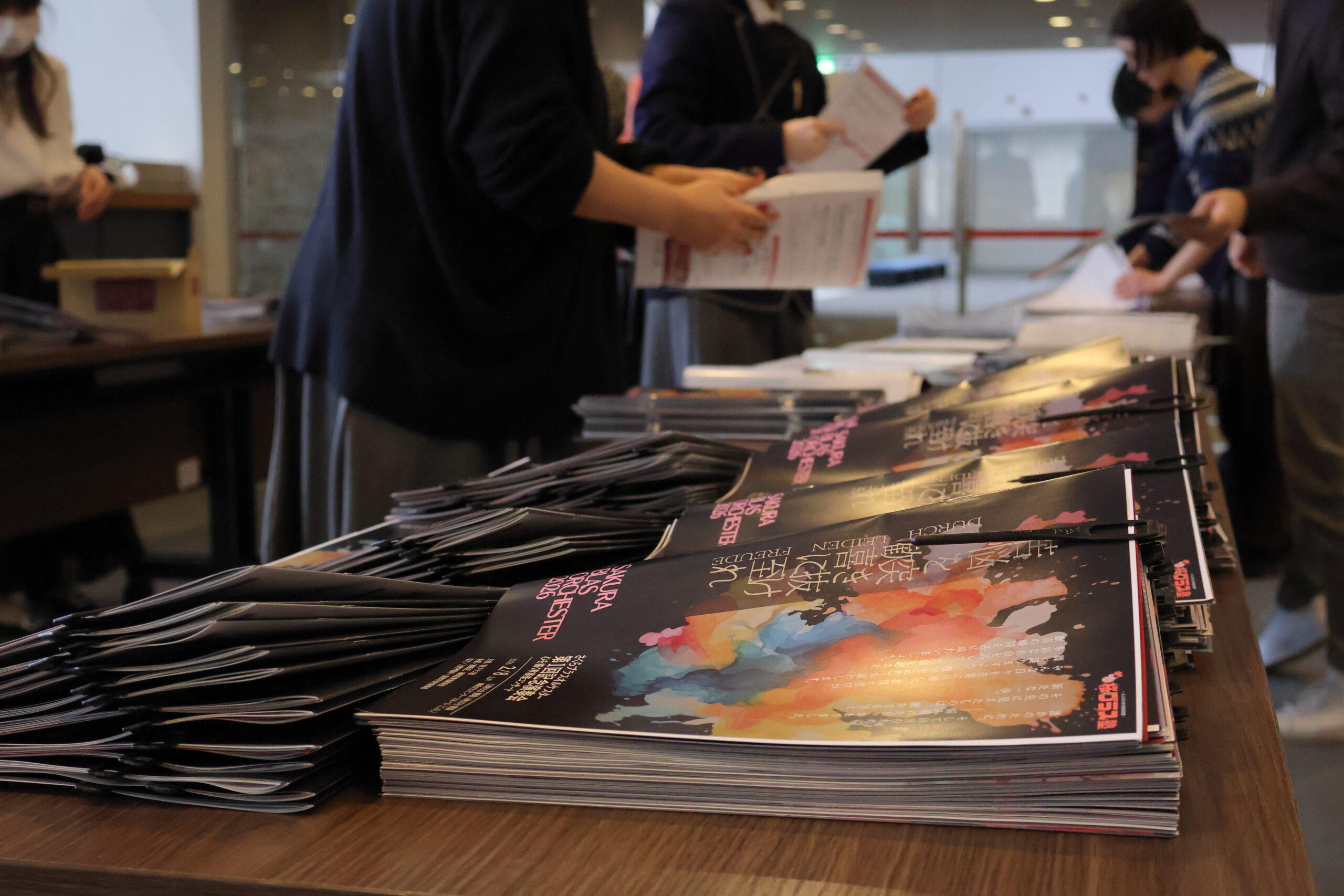 まずは後半「交響曲第3番」。通しながら、大ホールの響き方やバランスなどをチェックしていきます。タイミングやテンポの確認もしつつ、1〜2箇所程度返して終了。休憩を挟み、前半の「天使のささやき」から曲順にて通していきます。練馬児童合唱団の皆さまもここからご参加いただき、演奏の立ち位置を確認します。その後曲順にて通しつつ、司会を入れた状態で舞台明かりとの連携確認。間もなく本番、さあ頑張りましょう🌸